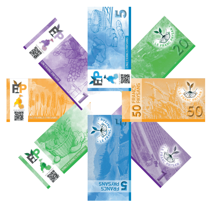 Cette monnaie alternative fonctionne comme des bons d’achat, c’est-à-dire que seul les paysans qui pratiques la vente directe et affiliés à l’association le franc paysan peuvent les reconvertir en francs suisses. Vous pouvez en obtenir à la ferme du moulin ou les commander directement à l’association.
